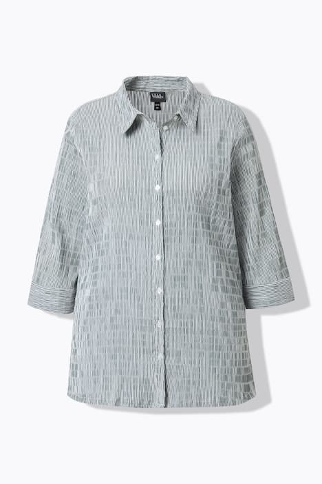 Chemisier à rayures, texture gaufrée. Col classique et manches 3/4