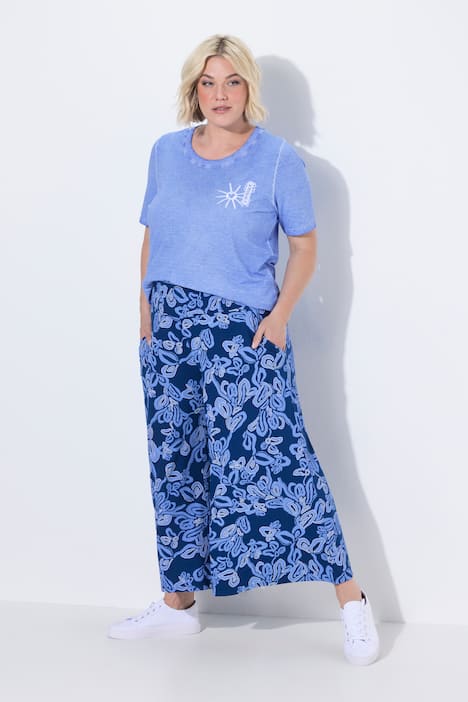 Jersey-Culotte Rose, extraweites, gerades Bein - Look wie ein Hosenrock. Aus aus angenehm elastischem Flammjersey mit feiner Struktur und grafischem Muster. Angenehm breiter Elastikbund, 2 seitliche Taschen.