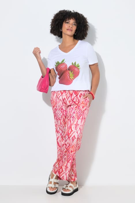 Hose, gerades Bein, aus schimmerndem Satin mit Alloverdruck. Elastikbund mit seitlichen Nahttaschen.