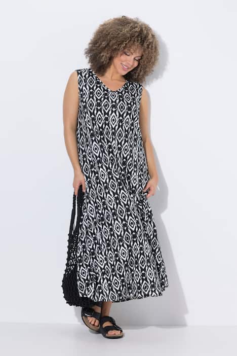 Maxikleid, ärmellose A-Linie. Aus angenehm elastischem Jersey mit grafischem Muster und V-Ausschnitt.