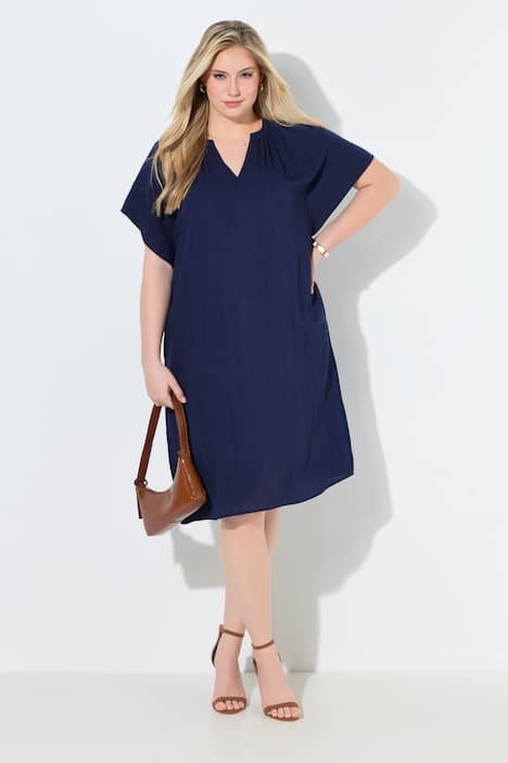 Kleid, Leinenoptik, Tunika-Ausschnitt, Flügelärmel