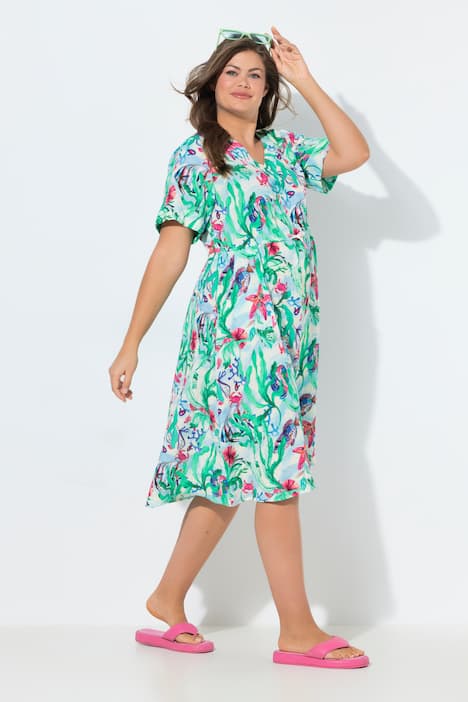 Musselin-Kleid, V-Ausschnitt, Tunnelzug, 1/2 Arm