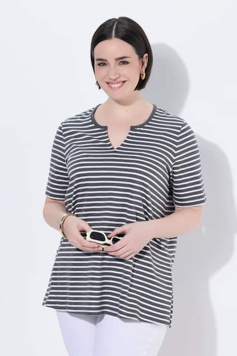 Longshirt, A-Linie, aus weichem Ringeljersey mit feiner Struktur. Rundhalsausschnitt, Halbarm. Seitenschlitze - noch mehr Tragekomfort.
